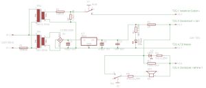 Stückliste: Part Value B1 C3700-2200 C1 100µF 60V C2 470µF 35V C3 10nF 60V F1 500mA F2 100mA F3 2A IC1 7824 LED1 LD LED2 Power R1 1kΩ 0,25W R2 1,5kΩ 1W R3 100Ω 10W R4 1kΩ 0,25W R5 470Ω 0,25W S1 Anst. S2 Ton SP1 8Ω TR1 24V 25VA TR2 24V 0.35VA X1 220V 50HZ X2 zum TZG
