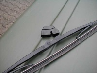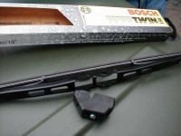 Die Bilder 1 und 2 zeigen den Adapter mit dem diese Umrüstung erst möglich wird, im Hintergrund das eingesetzte Wischerblatt.