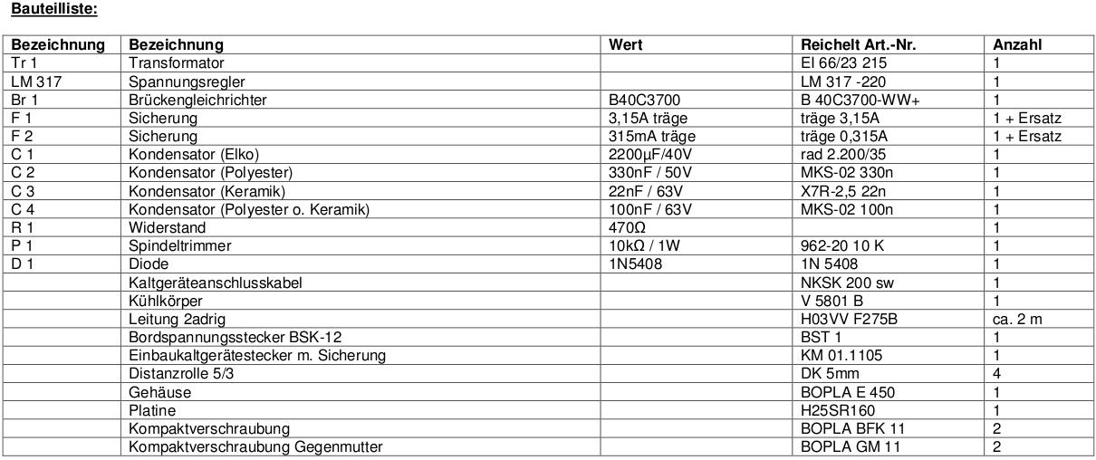 Bauteil/Kleinteil Bezeichnung Anzahl Bemerkung
