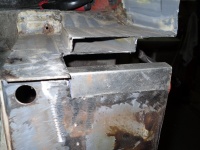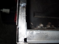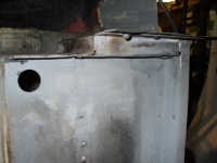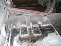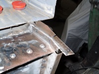 Als erstes wird der Winkel zwischen Batteriefachboden und innerer Stehwand mittels einer Punktnaht am Batteriefachboden neu angesetzt und grob verschliffen.