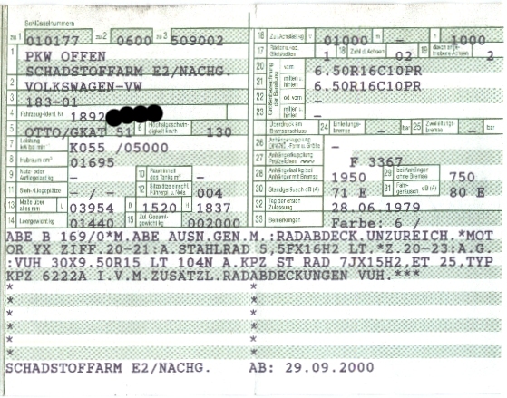 aktuell | 04:36, 3. Feb. 2012 | ![]() | 559 × 439 (195 KB) | Wgrefe (Diskussion | Beiträge) | Beschreibung: Kopie Fahrzeugpapiere Brief01 *Freigaben *Eintragungen *Höherlegung |