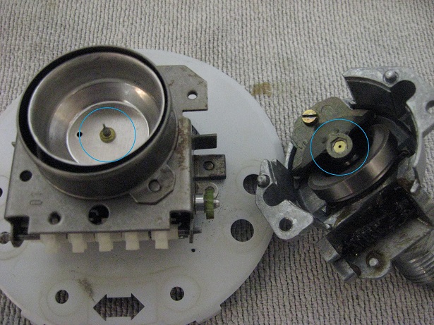 Im Bild ist auch das kleine Antriebsritzel zu sehen, welches mittels einer Hülse repariert wurde.