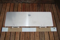 Man lässt sich das Alublech beim Metallhandel rechteckig zuschneiden. Oft hat man dort Abfallstücke mit ausreichenden Maßen. Die Schutzfolie lässt man bis zum Schluß der Montage drauf. Den Stahlblechstreifen findet man in jeder Karosserie- oder Klempnerwerkstatt. Man besorgt sich im Hobbymarkt oder Eisenwarenhandel die Scharniere. Wichtig ist, daß der eine Scharnierflügel in den anderen fällt, siehe Abb.1, um die Dicke zu beschränken. Als Schloß nimmt man ein Briefkastenschloß aus dem Baumarkt oder Eisenwarenhandel. Diese Schlösser sind mit verschiedenen Riegeln zu bekommen, geraden oder gekröpften. Für unseren Zweck ist einer mit 10mm-Kröpfung am besten geeignet. Besonders elegant wäre das Handschuhkastenschloß des VW-Käfer-Cabrioletts, aber das ist kaum noch zu bekommen und wenn, dann zu horrenden Preisen.