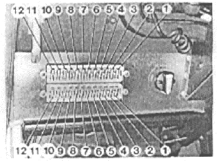 12 | Klemme 15a | Motortemperatur-Anzeige, Kraftstoffvorratsanzeige, Kontrollleuchten für: Generator, Öldruck, Kühlwassertemperatur, Öltemperatur, Blinker - 8 Amp. |